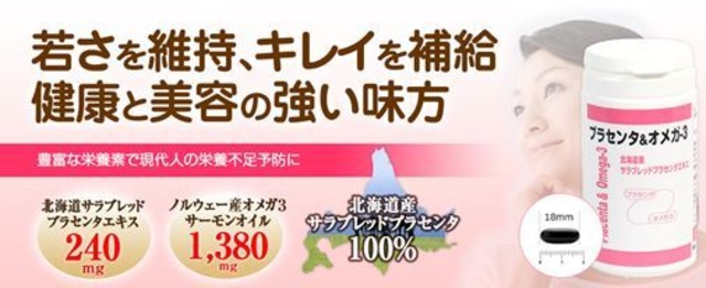 女性にとって魅力的なサプリメントを配合しました!100%北海道サラブレッドを使用したプラセンタに、NASA開発の藻類100%のオメガ3、3粒で約1兆個の乳酸菌。一週間タブレットに入れてお送り致します。まずは、一週間お試し下さい。