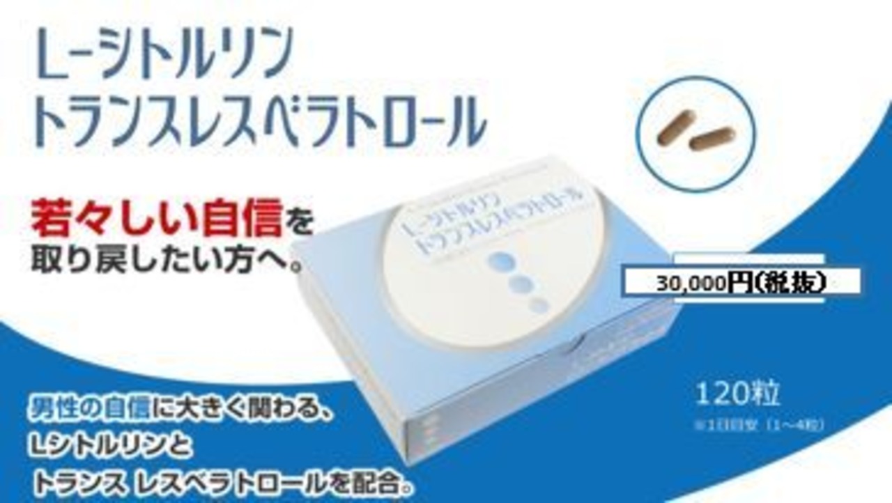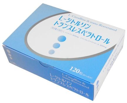 シトルリンという名前がつけられたのです。シトルリンは、その名の通り、スイカをはじめキュウリなどのウリ科の野菜に多く含まれてます。また、シトルリンはタンパク質を構成しない「遊離アミノ酸」の一種といわれており、血液や尿をはじめ、細胞中、全てに存在しているといわれてます。シトルリンは、一酸化窒素を作り出したり、増やす働きがあり、一酸化窒素は血管を広げ、血流量を増やす働きがあると言われています。本製品では、数万種類以上の微生物中からL-シトルリン製造に最適なものを選び出し、発酵法原料のL-シトルリンを4粒で800mg、インドキノ木の心材(木の真ん中に部分)から抽出した高含有れすべレスベラトロールを原料したトランスレスベラトロールを4粒で300mg配合、L-シトルリン&トランスベラトロール(120粒入り)